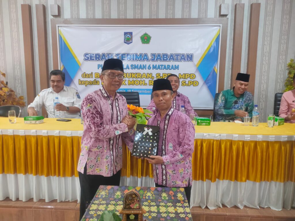 Pada kesempatan ini, Plt Kepala Sekolah yang lama Bukran, S.Pd., M.Pd yang menjabat semenjak tahun 2024 yang lalu, digantikan oleh Moh. Ridwan, S.Pd. sebagai Plt Kepala Sekolah yang baru. Acara serah terima Jabatan ini dilaksanakan di ruang Aula SMA Negeri 6 Mataram.
